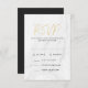 Stylish and modern wedding RSVP enclosure cards feature faux gold trendy script font, white marble background, and placeholders for your custom wedding menu options. The reverse side of the elegant wedding rsvp cards can be changed to a color of your choice with the Customize tool.