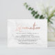 Stylish and modern wedding information enclosure cards featuring faux rose gold script font, white marble background, and placeholders for your custom wedding details. The back of the rose gold wedding information cards can be changed to a color of your choice with the Customize tool.