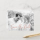Stylish modern wedding save the date postcards featuring a faux rose gold foil trendy script font overlay, placeholders for your custom text and engagement photo, and white marble background. The back of the postcard features the option for custom text or can be left blank for a handwritten message.