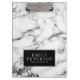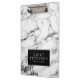 Modern white and black marble stone pattern with black background. Customisable clipboard template.