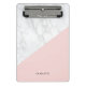A modern mini clipboard featuring white marble with pink block accent. Personalize this mini clipboard by adding your own details. Other colors are available.