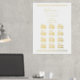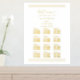 A simple minimalist white background with three simple lines on top and bottom still manages to lend a dramatic backdrop to this modern "Welcome" Seating Chart wedding design. The text and lines are in real gold foil. Script text can only be modified by designer. Composite design by Holiday Hearts Designs (rights reserved).