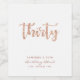 Minimalist 30th birthday white and rose gold wine bottle label in modern, chic and elegant typography style. Featuring age "thirty" in sparkly rose gold. Customise with age, name, and year of birth.