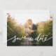 This simply chic photo wedding save the date flat card has a simple, warm and clean design that features a handwriting script. Use the design tools to customize it and make it uniquely yours with your favorite photo!