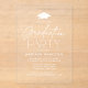 Modern graduation party invitations featuring a white graduation cap at the top of the design with "Graduation Party" displayed in white script typography on a frosted or transparent acrylic background. Personalize the minimalist graduation party invitation with the graduate's name and party details. The acrylic graduation party invite is perfect for celebrating both high school and college graduates.