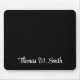 Modern professional monogram black mousepad with your name in a stylish white script.