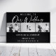 Modern white script black and white photo elegant wedding poster feature customizable engagement three black and white photo Wedding Sign with white script on black background. All layers were left unlocked so you can also click to further customize and reposition text, photo or even change sizes or font type.