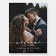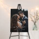 This chic wedding welcome sign features elegant calligraphy with photos front and back. For more advanced customization of this design, please click the Customize Further link to change font, size, and color.