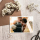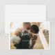 Double sided small wedding thank you card with one side printed with a photo, thank you and your names written as a white overlay in a combination of modern script and clean letters. The other side features a lined thank you note card where you can write a thank you by hand.