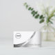 Very elegant white and silver colored business card design with a noble shimmery silver decor.