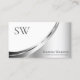 Modern White Silver Decor with Monogram and Photo Business Card