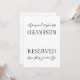 This simple and elegant wedding reserved sign is ideal for modern weddings. The design features a handwritten font and a modern minimalist style. Designed to coordinate with the «Emma» Wedding Invitation Collection. To modify details, click "Details". To adjust text, size, font, or color, use the "Edit using Design Tool" option. Explore the collection link on this page to view all the matching items in this beautiful design.
