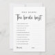 Elevate your bridal shower with our customizable "Who Knows The Bride Best" game card. With a sleek black-and-white design, this minimalist game adds a fun touch to your celebration. Guests can test their knowledge of the bride with personalized trivia questions, making it the perfect addition to your last fling before the ring festivities.