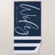 Modern Wifey Script Nautical Navy & White Stripes Beach Towel