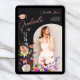Modern wild flowers script photo dark graduation announcement
