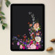Elegant modern spring summer flowers illustration with pretty wild flower and brush script photo arch graduation announcement with a modern calligraphy typography with red, purple, pink , terracotta flowers on dark gray background