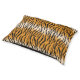 Vivid colors, and soft, plush fabric! I was extremely happy with this purchase. The print I chose worked on the large dog bed beautifully, and is a perfect match for our home tiki bar. Our dogs look so stylish lounging in here with us, and they love the soft fabric. My only minor critique would be that the stuffing inside is a little on the thin side, and becomes flat very easily. It's an extremely easy fix to add more stuffing, or do what we did and add a stuffed rectangle crate liner inside the cover underneath the existing stuffing - works perfectly! The printing turned out better than I could've imagined. I was extremely impressed with how well the colors turned out and how the design looked.