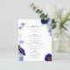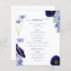 Beautiful boho watercolor wildflowers and foliage in blush blue, cornflower blue, navy, purple and green hues, ideal for a unique spring or summer day of the wedding menu. Elegant modern typography script in navy blue complements the whimsical boho stunning hand painted artwork which includes cornflowers, poppy, cosmos, forget me nots and delicate foliage. Chic bohemian wedding menu perfect for a spring meadow, summer garden wedding. Original artwork by artist Catherine Sweetman