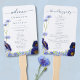 Chic bohemian wedding program includes ceremony details and the wedding bridal party with easy to personalize templates perfect for a spring meadow, summer garden wedding. Beautiful unique hand painted watercolor wildflowers and foliage in blush blue, cornflower blue, navy, purple and green hues, ideal for a spring or summer day of the wedding program. Elegant modern typography script in navy blue compliments the whimsical boho stunning hand painted artwork which includes cornflowers, poppy, cosmos, forget me nots and delicate foliage. Original artwork by artist Catherine Sweetman