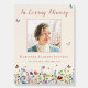 This is an elegant and modern memorial funeral welcome sign. The design features a beautiful calligraphy font and lovely wildflowers in pastel pink, purple, blue, yellows and rust reds or terracotta and also delicate fluttering butterflies. This memorial sign can easily be personalized with your own photo to create a special tribute for your loved one using the template provided. Please contact the designer for any queries regarding this design or for any matching products.