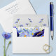 Elegant and Stylish typography script with beautiful hand painted watercolor wildflowers make these wedding envelopes with personalized return address perfect for a spring or summer wedding. Unique meadow wildflowers including cornflowers, poppies, cosmos, forget me nots with delicate foliage painted by artist Catherine Sweetman in cornflower blue, blush blue, navy blue, purple and green hues. Ideal for the botanical garden or outdoor spring summer wedding. Find matching items in the modern wildflower Blue wedding suite