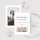 This Modern Eucalyptus Photo Save the Date Announcement design features a variety of colorful wild flowers, simple text design and placement for your photo on the back. Add your favorite photo and wedding date to customize. Perfect design for spring and summer weddings.