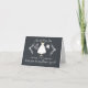 Stylish will you be my flower girl card featuring a fancy white frame with a wedding dress, wedding shoes, flower bouquet & veil set on a modern black chalkboard background.