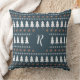 Modern Winter Christmas Tree Pattern Monogram Grey Throw Pillow