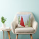 Triangle Christmas trees in snowy landscape modern art Christmas pillow.