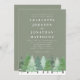 Celebrate your special day with the timeless beauty of nature. This snowy woodland Winter Wedding Invitation features a serene woodland pine forest painted in delicate watercolor, set against a stylish sage green background. The hand-painted watercolor fir trees in soft greens and frosty blues capture the quiet magic of a snowy landscape, creating a design that is both calming and sophisticated.