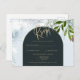 Modern Winter Greenery Wedding Gold Text Teal Arch Postcard