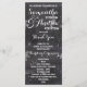 Modern winter snowflakes chalkboard Wedding Program. stylish, elegant and original black chalkboard with white snowflakes background. A black and white elegant wedding theme perfect for winter wonderland, Christmas wedding theme.The text is fully customizable