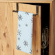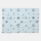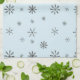 Simple, modern and wintery snowflakes pattern on light pastel blue background.