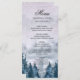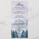 Elevate your winter celebration with this elegant watercolor forest menu design. Featuring a dreamy twilight sky, soft snowfall accents, and hand-painted evergreen trees, this menu adds a sophisticated seasonal touch to your wedding table décor. Personalize the text effortlessly to feature your names, wedding date, and custom dining selections. Ideal for winter weddings, mountain elopements, alpine venues, rustic woodland receptions, and modern seasonal celebrations. Professionally printed on premium semi-gloss cardstock for a refined finish that complements any winter color palette such as navy, ice blue, silver, white, or greenery tones.