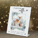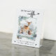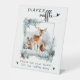 Encourage guests to participate with this charming "Diaper Raffle" pedestal sign! It features a modern, clean design with watercolor illustrations of a sweet fawn, rabbit, and squirrel, framed by cool blue-green winter greenery. This freestanding sign is the perfect way to clearly direct guests and add a beautiful, themed centerpiece to your prize or gift table at your winter baby shower.
