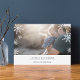 Modern, simple and minimal holiday photo card features your favorite horizontal or landscape oriented photo with a thick white bottom border. Your custom greeting appears in modern midnight blue lettering (shown with "Joyous Hanukkah"), with your family name or names beneath. A subtle snowflake pattern is overlaid over the edges of your photo for festive appeal. Cards reverse to a wintry snowflake pattern in matching midnight blue and white.