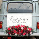 Add a touch of modern romance to your grand exit with our contemporary "Just Married" design, featuring a charming heart motif. Perfect for the couple's getaway car, this stylish banner brings a fun and festive flair to your departure, announcing your newlywed status in a memorable way. Drive off in style and let the world celebrate your love with this delightful addition to your wedding day decor.