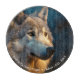 Personalized Cutting Board with a close-up image of a wolf at sunrise, night sky in background.