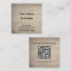 These modern wood grain QR code square business cards have a simple minimalistic design with a faux wooden pattern in beige. One side features your name, title, and contact information. The other side shows the type of service you offer, plus a QR code which you can easily create by adding your website address and the code will generate. Below that it says "scan for more info", which you can leave as is, personalize or delete. These cards are especially suitable for anyone who is a contractor, handyman, builder, carpenter, woodworker, construction specialist or maintenance person.