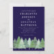 Modern Woodland Forest Navy Blue QR Code Wedding Invitation