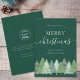 Share warm holiday wishes with clients, colleagues, and business partners with this corporate Christmas flat card template featuring original watercolor artwork by artist Catherine Sweetman. The elegant design showcases a snowy woodland pine and fir tree forest paired with modern typography in crisp white on a deep emerald green background, creating a professional yet festive look.