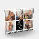 Modern Glass Photo Block Display for Grandpa! Design features a photo collage consisting of 5 curved edged square pictures and a colored block that can be changed to any color with the text 'The World's Best Grandpa', a cute little white heart and name/s.