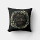 Modern Wreath and Script Black | Merry Christmas Throw Pillow