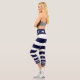 Modern yachts on navy blue and white striped Capri Leggings. Trendy nautical blue and white leggings!