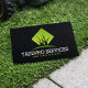 This modern yard maintenance business card features a bold green grass logo on a sleek black background, designed to communicate professionalism and reliability. Ideal for yard maintenance professionals, lawn care providers, and outdoor service businesses, this clean layout makes it easy to present your brand with confidence. Fully customizable to fit your business needs. Original artwork and design © 1201AM Design Studio