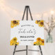 Welcome your guests with the gentle elegance of our "yellow bee sunflower, engagement party Bridal Shower Welcome Sign. This exquisite piece of sign combines delicate floral motifs with tranquil hues of blue, creating a serene ambiance that sets the perfect tone for a memorable celebration.