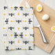 Modern Yellow Bee Pattern Black Elegant Monogram Kitchen Towel