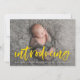 Modern Yellow Brush Script Introducing Photo Birth Announcement