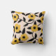 Modern Yellow Flowers Black Leaves Pattern Throw Pillow