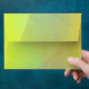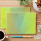 Bright yellow, orange & light blue geometric gradation with slight marbled effect.